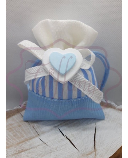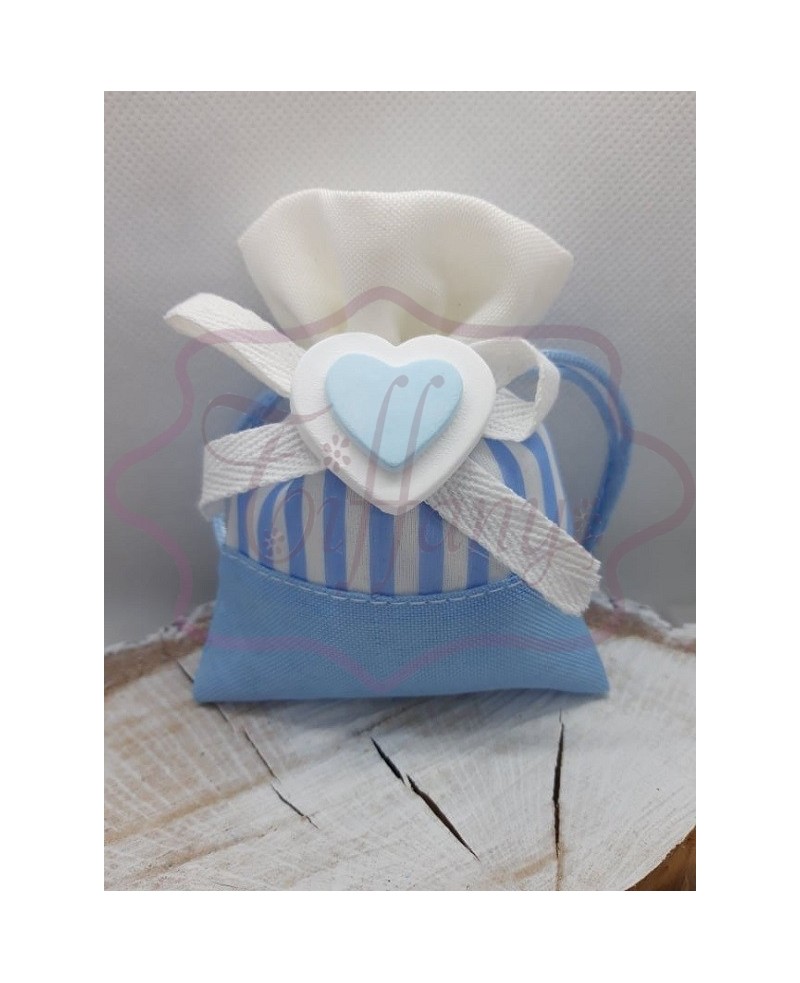 Sacchetto portaconfetti in tessuto cielo più cuore in gesso