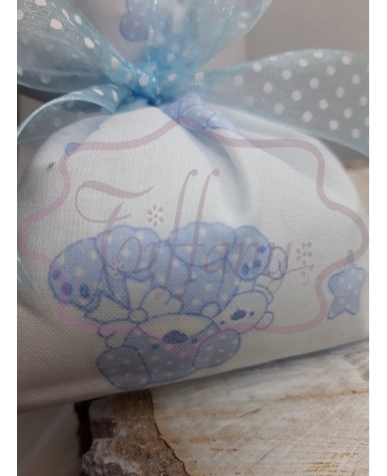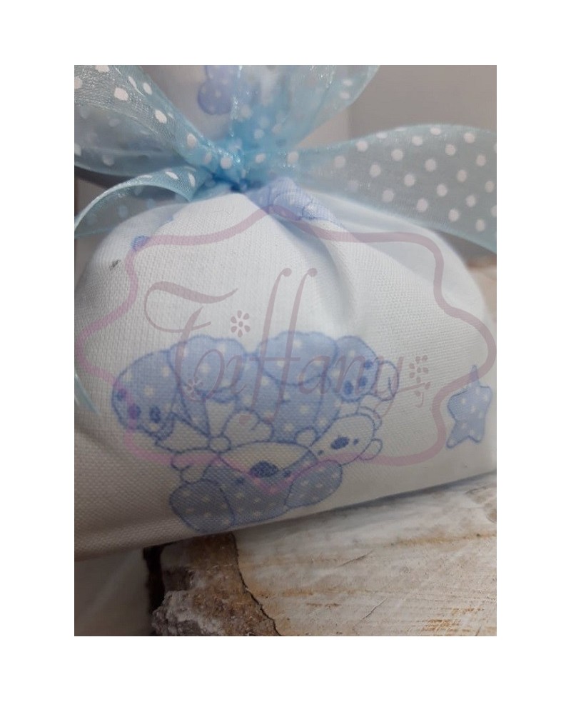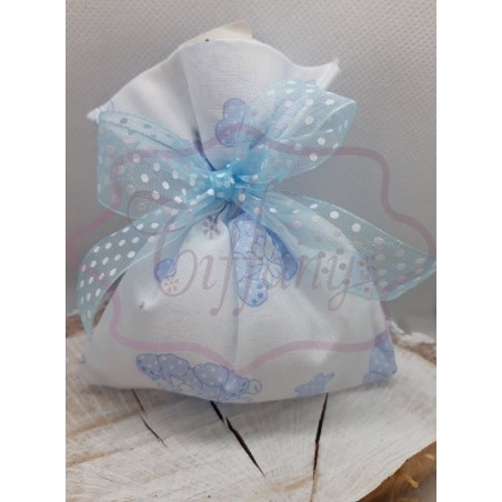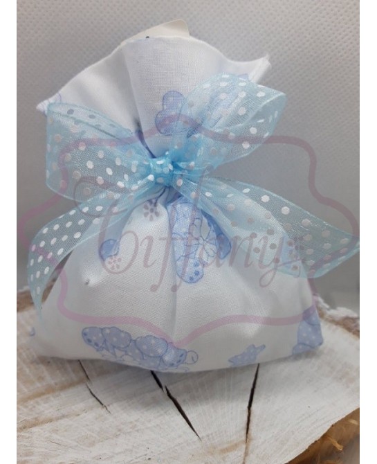 Sacchetto portaconfetti color cielo in tessuto stampato.