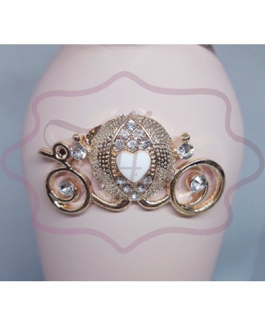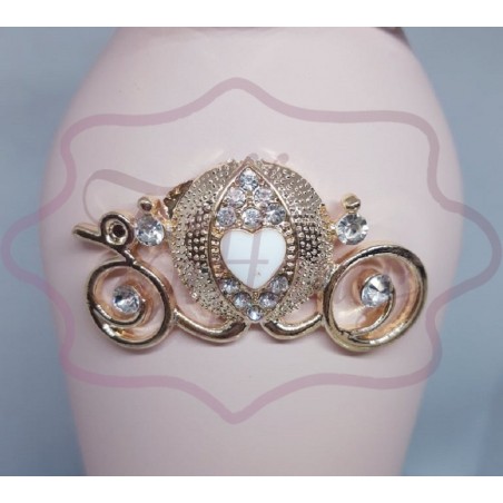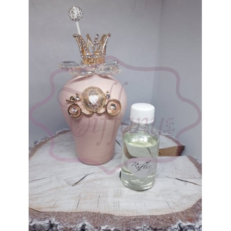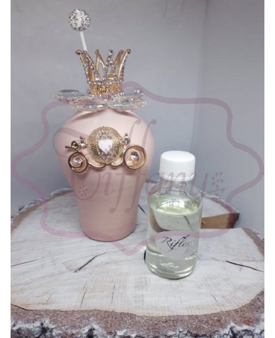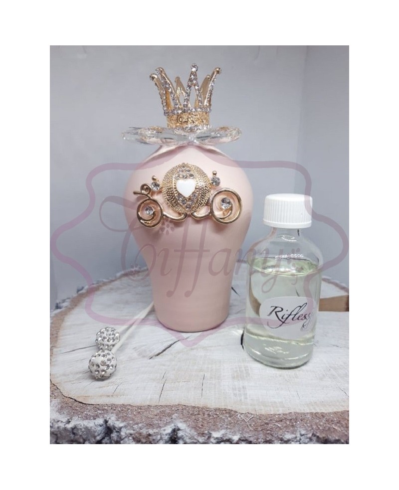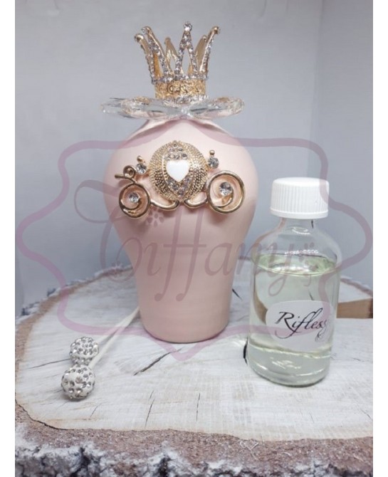 Profumatore medio cipria in porcellana , carrozza applicata in metallo oro con strass,fiore in cristallo e corona re oro.