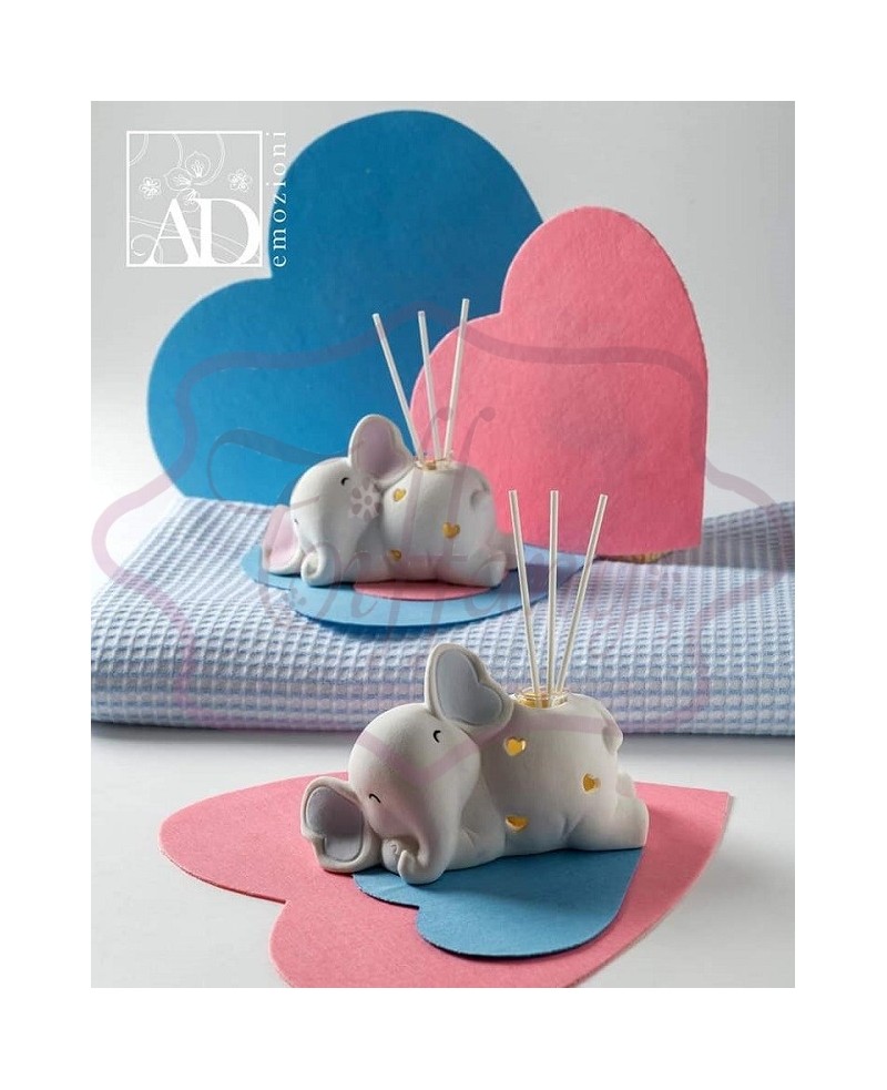 Elefante profumatore led con cuscino celeste "AD EMOZIONI" con profumo